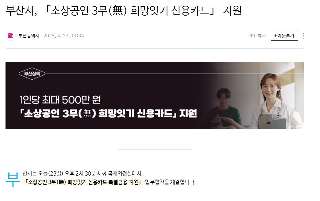 2025년 4월 30일부터, 부산시가 소상공인을 위해 준비한 ‘3무 희망잇기 신용카드’ 사업이 본격적으로 시작됩니다.