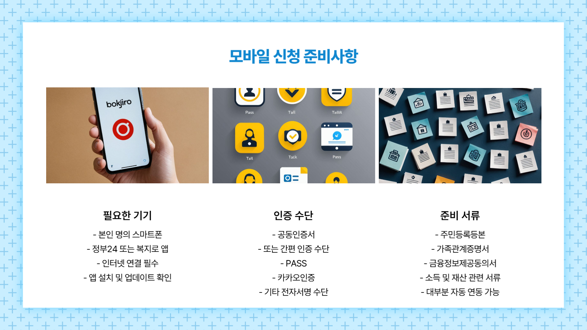 2025년부터는 정부24 또는 복지로 앱에서 누구나 손쉽게 모바일로 신청할 수 있습니다.